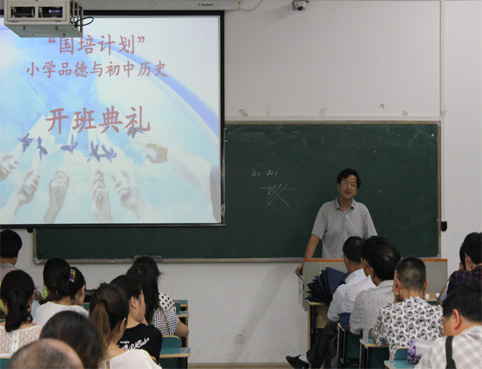 党政办主任张华、初中历史班班主任李莉老师、小学品德班班主任陈明华老师,全体国培学员参加了开班典礼。