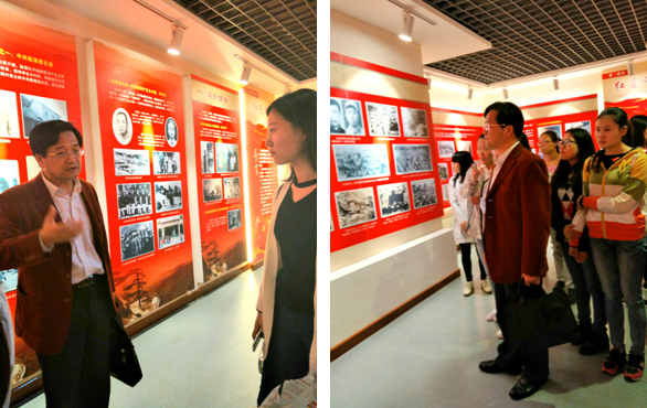 《中国共产党思想政治教育史论》课是思想政治教育专业的学位课,是对员工进行马克思主义信仰教育、热爱中国共产党教育及我党思想政治教育优良传统教育的重要阵地。为了深化课程改革,增强教育效果,丰富教育形式,改变传统的单一课堂讲授模式,2016年10月12日周二下午第三节课,2015思政班全班同学在居继清老师的带领下,开展了一堂实地参观红色革命纪念馆的中国共产党思想政治教育史论课。