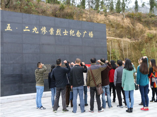 在罗田胜利革命烈士陵园,全体党员向烈士三鞠躬表达敬意,深切缅怀牺牲的革命烈士并仔细瞻仰了革命烈士生平事迹。在五·二九惨案烈士纪念广场全体党员重温入党誓词,并认真了解了惨案发生过程和英雄们的革命精神。本次主题党日活动使得全公司党员增进了交流,既学习也实践,同心同德为进一步做好2016年收尾工作、开启2017年新篇章奠定了良好的基础。