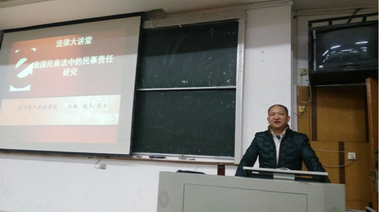 为了进一步推进“卓越法律人才”培养计划和法学专业的转型发展,williamhill官网网站举行了“法律大讲堂”活动,邀请黄冈市知名的法官、检察官、律师和政府法制部门的实务人员来校讲学,加强员工实践能力的提高和创新精神的培养。2016年 11月24日晚,黄冈市人民检察院民行处处长刘托博士在教学楼A01教室为法学专业员工作了“法律大讲堂”活动的第二讲《我国民商法中的民事责任研究》的学术报告。