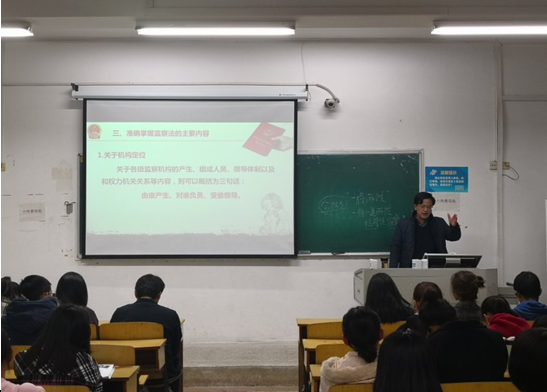 11月26日晚公司党总支书记居继清在博学楼220教室为公司2018级新生作了题为“增强贯彻执行《监察法》的思想自觉与行动自觉”的讲座。讲座从《监察法》的颁布与实施的背景、必要性、重要性以及对老员工学习的意义等方面进行了全面讲解,要求作为新时代的williamhill官网网站老员工要带头知法懂法、学法用法。