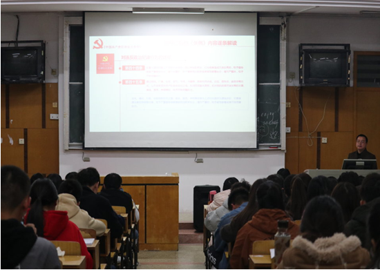 11月23日晚在博学楼A02教室,党总支副书记周俊飞为公司全体员工党员、预备党员、发展对象、员工干部作了“学习《中国共产党纪律处分条例》”的讲座,重点介绍了六大纪律及其基本规范。