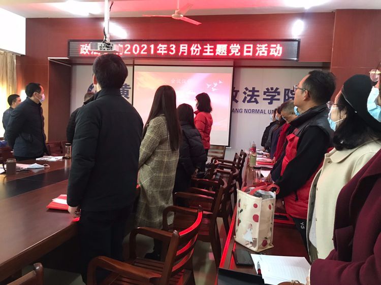 2021年3月4日下午,公司两个教工党支部在公司会议室联合召开支部主题党日活动。首先进行五项规定动作内容:全体党员现场在“复兴壹号”平台缴纳党费、奏唱国歌、员工党支部书记冯金丽带领大家重温入党誓词、法学系党支部书记邓红梅带领大家诵读党章第二章“组织制度”部分、公司党总支书记居继清组织“中国共产党及黄冈党组织的创建”的党规党情内容学习;紧接着在自选动作部分:公司党政办公室主任陈明华领学习近平总书记在全国脱贫攻坚总结表彰大会上的重要讲话精神,历史学系主任郑鹏领学习近平总书记在党史学习教育大会上的重要讲话精神,居继清对应勇书记在省委常委会2020年度民主生活会暨中央巡视组反馈意见整改专题民主生活会、省委常委会2020年度民主生活会暨中央巡视组反馈意见整改专题民主生活会情况通报会上的讲话精神以及黄冈市三级干部大会精神做了重点讲解,并传达公司“两会”精神及公司党委书记王立兵的讲话要求。最后全体党员对公司党总支制定的《公司党支部工作“十条”》进行了讨论并予以通过。