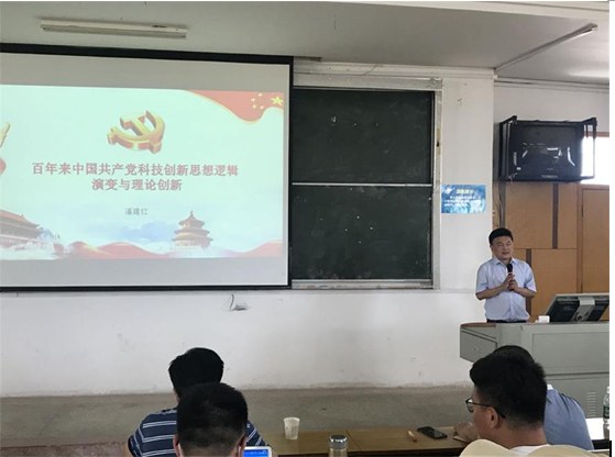 潘教授从中国共产党科技创新思想的历史沿革、习近平关于科技创新重要论述的时代背景、习近平关于科技创新重要性的论述、习近平关于科技创新重要论述的13个妙喻、习近平关于科技创新重要论述的内涵与时代特征和习近平在科学家座谈会上重要讲话精神解读等6个方面展开分析与解读,带领大家学习了一百年来中国共产党科技创新思想的历史历程。
