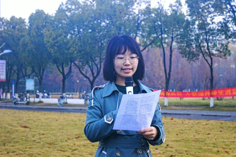 第四项:员工演讲。法学2001班梁智涵以“弘扬宪法精神,增强法治观念”为主题,法学2002班刘婧以“弘扬宪法精神,青春与法治同行”为主题,在国旗下进行演讲。