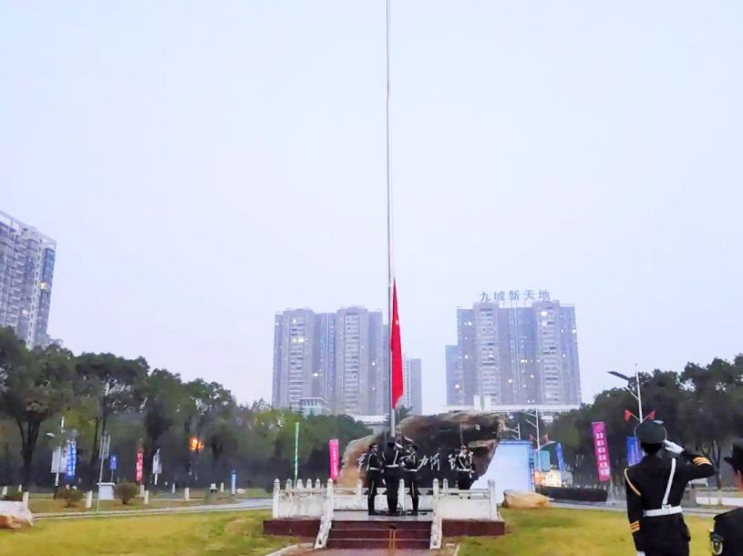 第一项:升国旗,奏国歌。国旗护卫队动作整齐划一,步伐铿锵有力,他们用自己的力量,坚定地守护那一抹炽烈的红。当国歌响起,仰望迎风飘扬的五星红旗,强烈的民族自豪感和使命感在心底油然而生,这是祖国带给我们的自信,是扎根我们血脉的魂。
