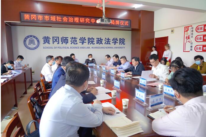 马志斌代表公司签订了联合共建黄冈市市域社会治理研究中心合作协议。胡娟宣读了关于成立“黄冈市市域社会治理研究中心”的通知文件。金鑫与陈向军共同为黄冈市市域社会治理研究中心揭牌。