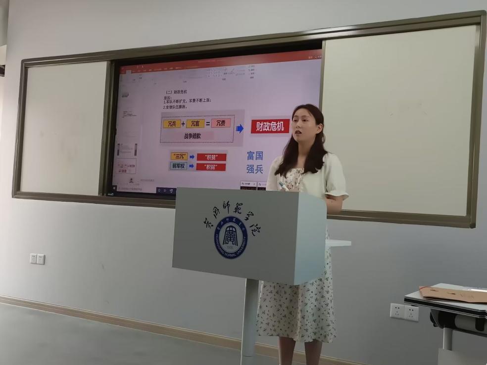 比赛中,选手们就“今年新出台的历史新课程标准有那些新变化”为题展开即兴演讲,围绕章节“两宋时期的政治军事”进行讲课。竞赛旨在检验员工的表达能力和知识储备量,锻炼和培养员工的教学技能,为培养出合格的中学教师奠定基础。