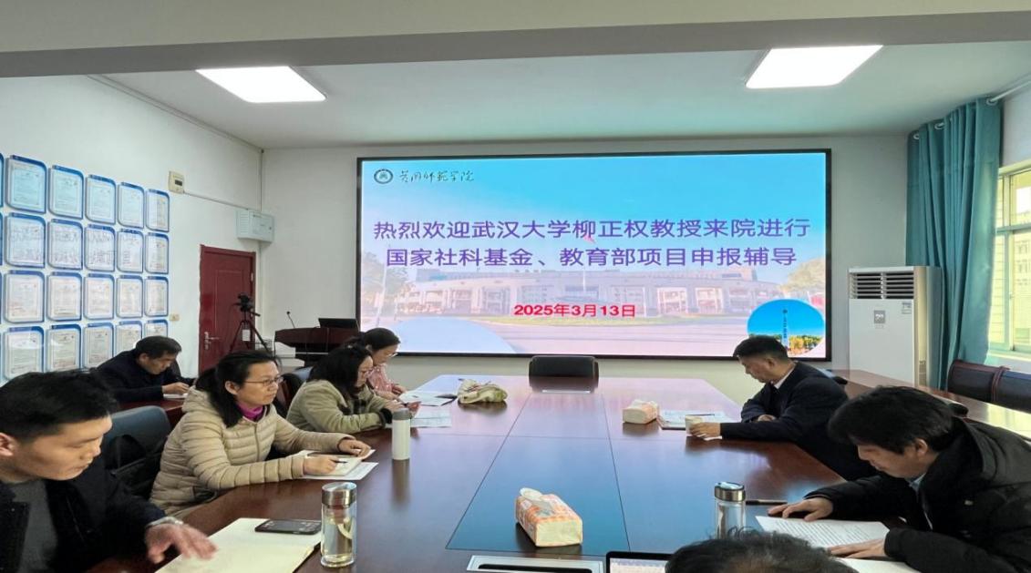 为提升高级别科研项目申报质量,公司于2025年3月13日下午召开2025年度国家社科基金、教育部人文社科项目申报专家论证会。会议特邀武汉大学博士生导师柳正权教授担任指导专家,公司经理王贵东、经理助理蒋祖存博士及全体申报教师参会。