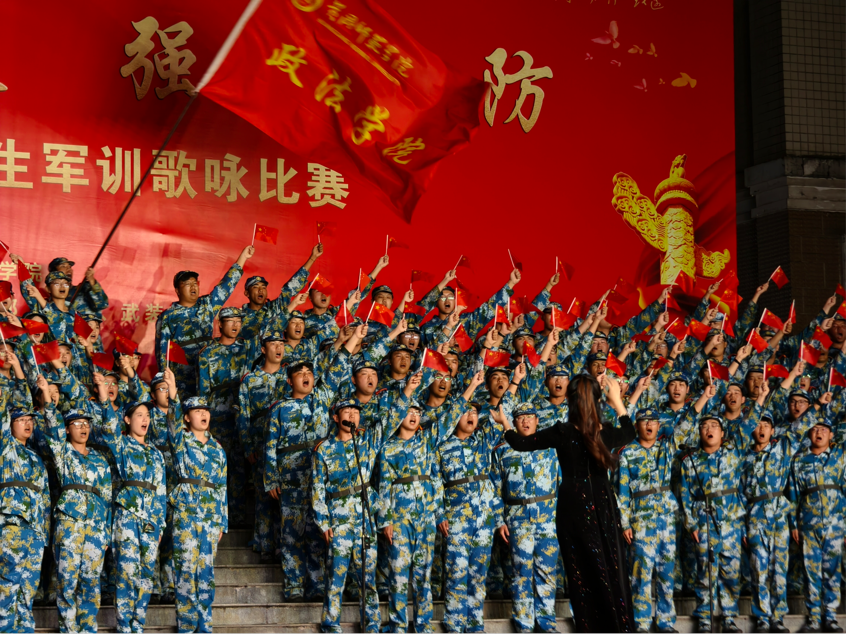 为了能在比赛中充分展现政法学子风采,公司25级新生们利用军训空余时间,展开了为期一周的密集训练。从最初合唱时的缺乏默契、节奏不一,到后期的声部协调、齐声欢唱,每一个音调的校准、每一句歌词的打磨,都凝聚着同学们的汗水与坚持,也见证了他们在短时间内的快速成长。