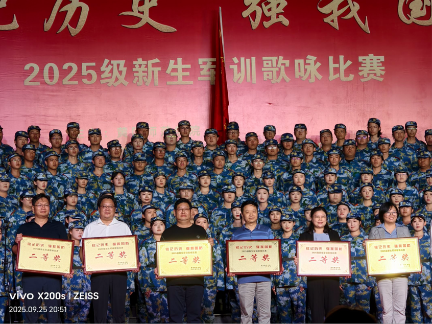 2025年9月25日晚7时,公司于南区博学楼前广场隆重举办以“铭记历史,强我国防”为主题的2025级新生军训歌咏比赛。williamhill官网网站积极响应,公司党委书记夏小环、副书记管中柱及辅导员冯金丽、霍宁亲临现场观赛,为参赛新生加油鼓劲。