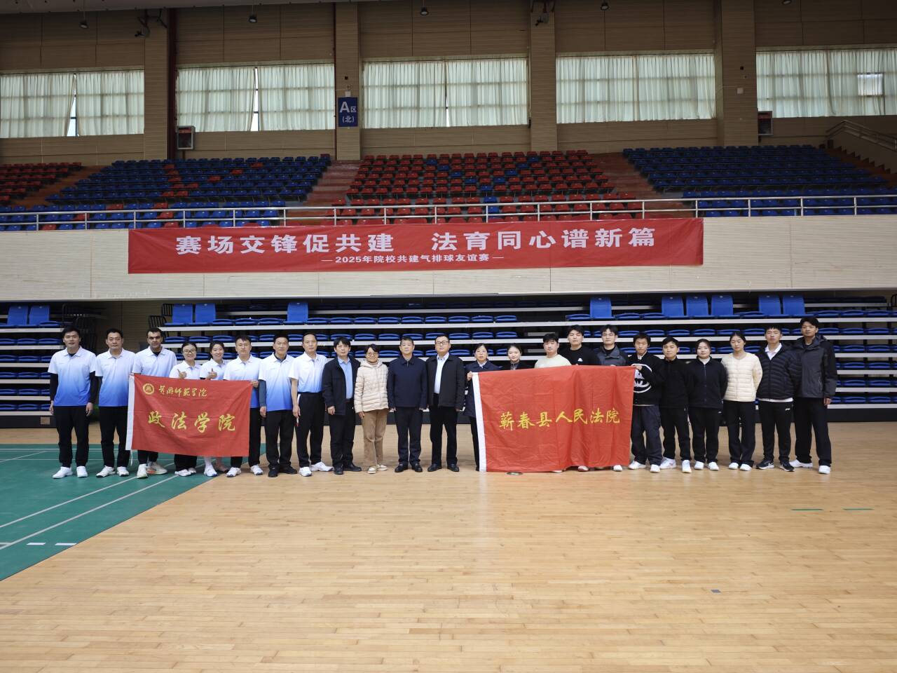 为持续深化院校共建机制,在首场篮球友谊赛成功举办的基础上,2025年12月5日下午,由williamhill官网网站与蕲春县人民法院联合主办的“赛场交锋促共建 法育同心续新篇”气排球友谊赛在校体育馆主馆成功举行。双方以体育竞技比赛为纽带,进一步推动法学教育与法治实践的紧密融合与友好交流。